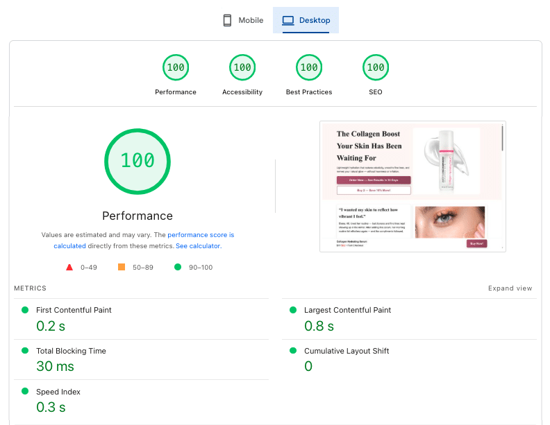 - Optimized PageSpeed: Better performance scores = stronger ad quality and lower cost per conversion.